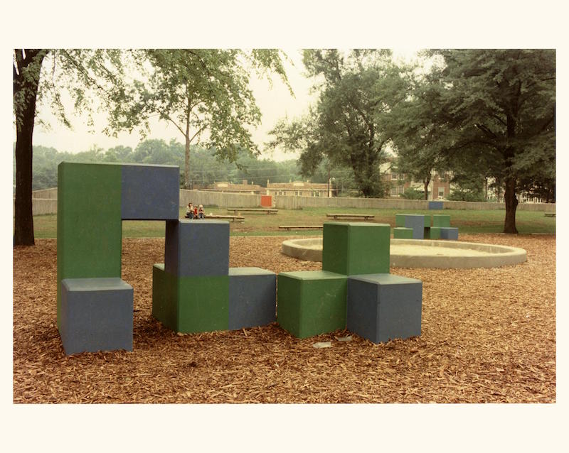 The first actual playground Noguchi realized was only a temporary structure, located outside of Tokyo, called Kodomo No Kuni or ‘The Children’s Country.’ It was built in 1965 for the national holiday, Kodomo no Hi (Children’s Year). In the mid-1970s, Noguchi’s Playscapes was established in Atlanta’s Piedmont Park. (see: Lange, 2019). In his design for Playscapes, Noguchi envisioned an all encompassing educational landscape, complete with a shelter, a classroom, art studios and an office space. He intended for the space to be utilized throughout the year by school groups and summer camps, as well as the general public. The playground equipment is more akin to abstract sculpture than the typical jungle gyms, slides and swing sets seen in most playgrounds, however, every abstract and surreal form is highly functional in encouraging self-directed play. As writer Aria Danaparamita describes, “Rather than dictate a play activity, the structures invite creative interactions. Kids can climb, swing, and roll around in the Playscape’s spiral tower, play cubes and modernist geometric structures with integrated slides and swings” (Danaparamita, 2013).