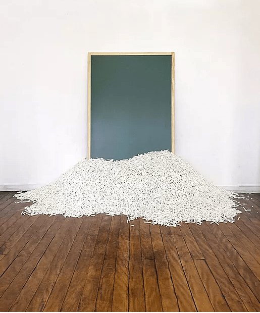 Novaes’ art posits that inherent nature and experiential nurture work in tandem with regards to acquiring and communicating knowledge. We have certain imbued characteristics that are true to ourselves, and other forms of social, emotional and cognitive behaviors that we develop through experience and educational frameworks. The metaphor of the tabula rasa (blank slate) is a recurring theme in his participatory installations, such as Empty class (2018). The work of art consists of a pile of white chalk arranged on the floor in a towering mound. The pieces of chalk are supported by a blank blackboard. In Open draw (2020), blackboards, chalk and educational toys are transported outside of the classroom and installed in a public space. The installation utilizes interactive learning modules in an atypical space that is more indicative of a playground than a school. In each of these experiential works of art, Novaes gives viewers a chance to express themselves by making marks with the chalk, which become instant and informal conversations. The marks that are left, reworked and erased by various participants over time, suggest a sense of collaboration and inform others about the intersectional identities and dynamic culture of the surrounding locality. The crux of these works is that education can transpire anywhere, and profound learning happens when it is encouraged to occur organically and communally.