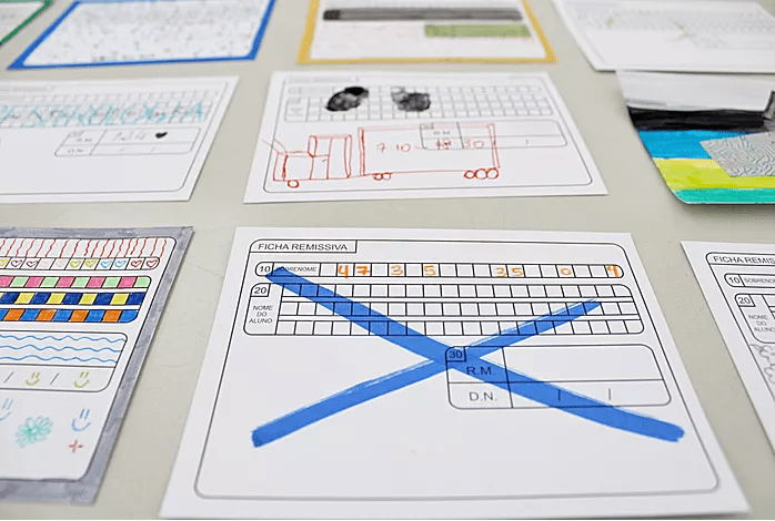 Another collaborative project that reflects individual and community expression is How do you want to be remembered? (2017). Novaes developed this work of art with students who were in their final year of high school. After an in-class discussion about memory and identity, the students were presented with blank administrative cards (known as remissive forms) that are traditionally used by the school secretary to create a database of graduating students (a record of names, registration numbers and dates of birth). Once they had the cards, Novaes made a variety of art materials available and prompted the students to respond to the question “how do you want to be remembered?” These cards, which are usually marked with quantitative data, became open-ended substrates for the students to symbolically represent their personas and react to their current and prior school experiences. Many of the students critically examined and commented on being identified via a numerical system (their student registration numbers), while others addressed standardized examinations and other formal assessments. As a series of works, the cards exhibit a student-centered revision and diversion of social conformity and impersonalization within a bureaucratic educational institution.